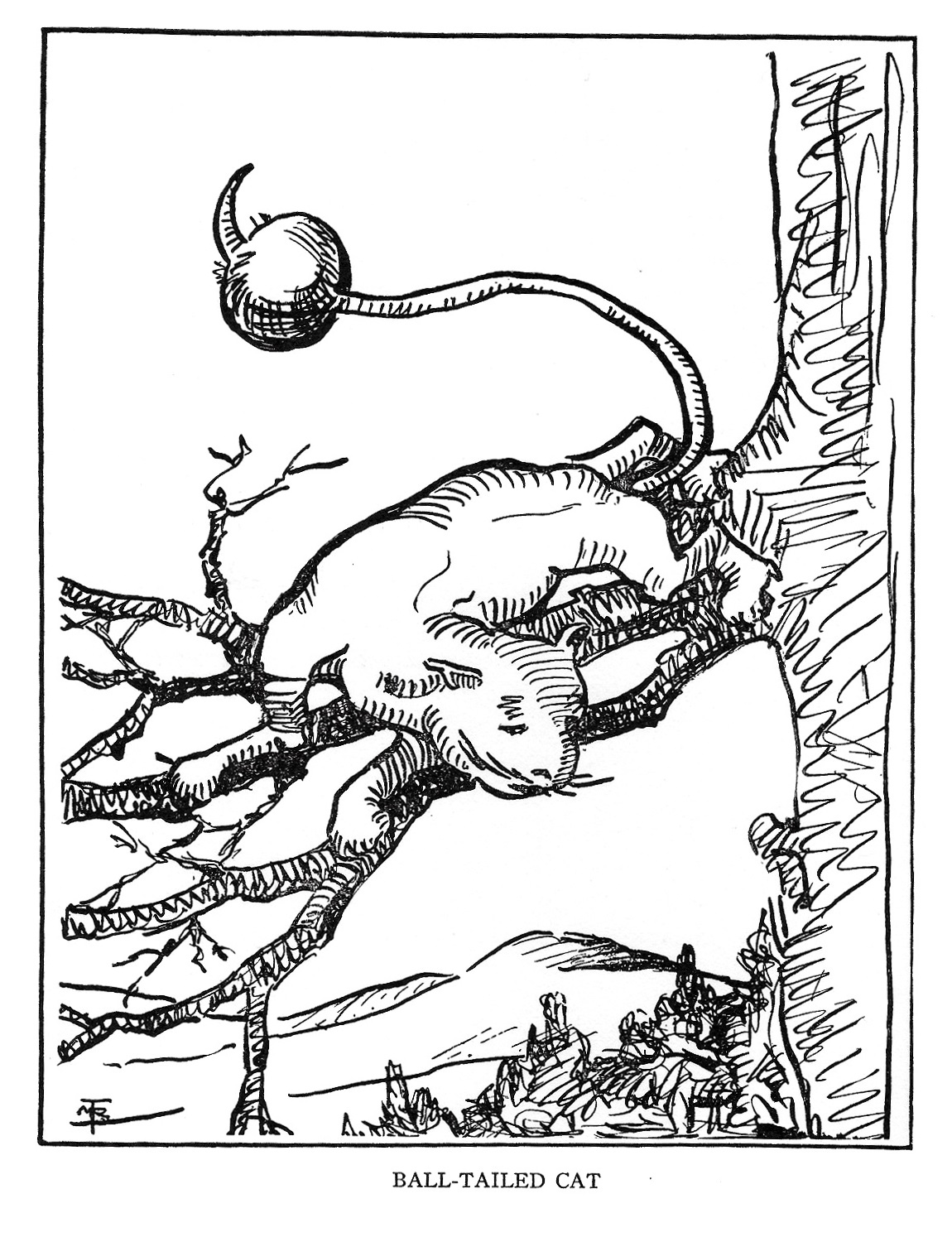 This species has occasioned much discussion and peppery argument. It has often been confused with both the Silver Cat and the Dingmaul. A careful Study of the equipment and habits of the three species shows plainly that they are, by no means the same. It is quite possible that they are all distantly related; perhaps the Ball-tailed boy is a less highly developed variant of the same phylum.