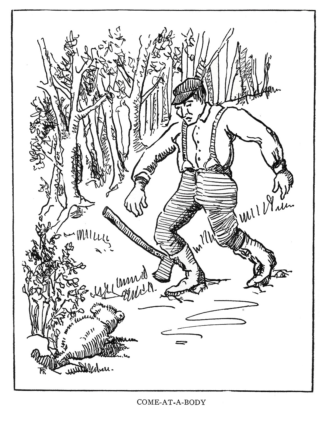 Reported by Mr. B.B. Bickford of Gorham, N.H. Not found outside the White Mountains. A short, stubby, rather small animal resembling a Woodchuck but having very soft, velvety, kitten-like, fur. Harmless, but surprising. Has the terrifying habit of suddenly rushing directly at you from the brush, then stopping only a few inches away and spitting like a cat. A strong mink-like scent is thrown and the Come-at-a-Body rushes away.